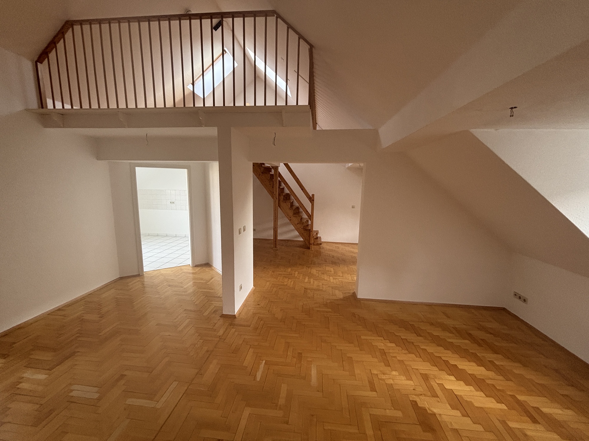 Die Maisonettwohnung befindet sich im DG links eines sanierten Altbaus Ausstattung: Im Flur, den Wohn- und Schlafräumen Parkett, Bad und Küche gefliest, Bad mit Fenster, Dusche und Wanne, Dachterrasse, bedingt für Wohngemeinschaft geeignet. Wohnlage: In der Nähe des Bayrischen Bahnhofes und des Stadtzentrums |