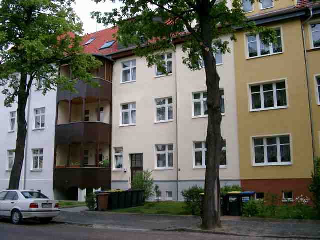 Die Wohnung befindet sich im 2. OG rechts eines sanierten Altbaus. Ausstattung: Im Flur, den Wohn- und Schlafräumen ist Parkett/Laminat verlegt; in der Küche ist ein Vinylboden verlegt; das Bad mit Fenster u. Wanne ist gefliest. Ein Balkon ist vorhanden. Die Einbauküche mit Kühlschrank und die Waschmaschine im Bad können nach Bedarf vom Vormieter käuflich erworben werden. Wohnlage: gute Wohnlage in ruhiger Seitenstraße |